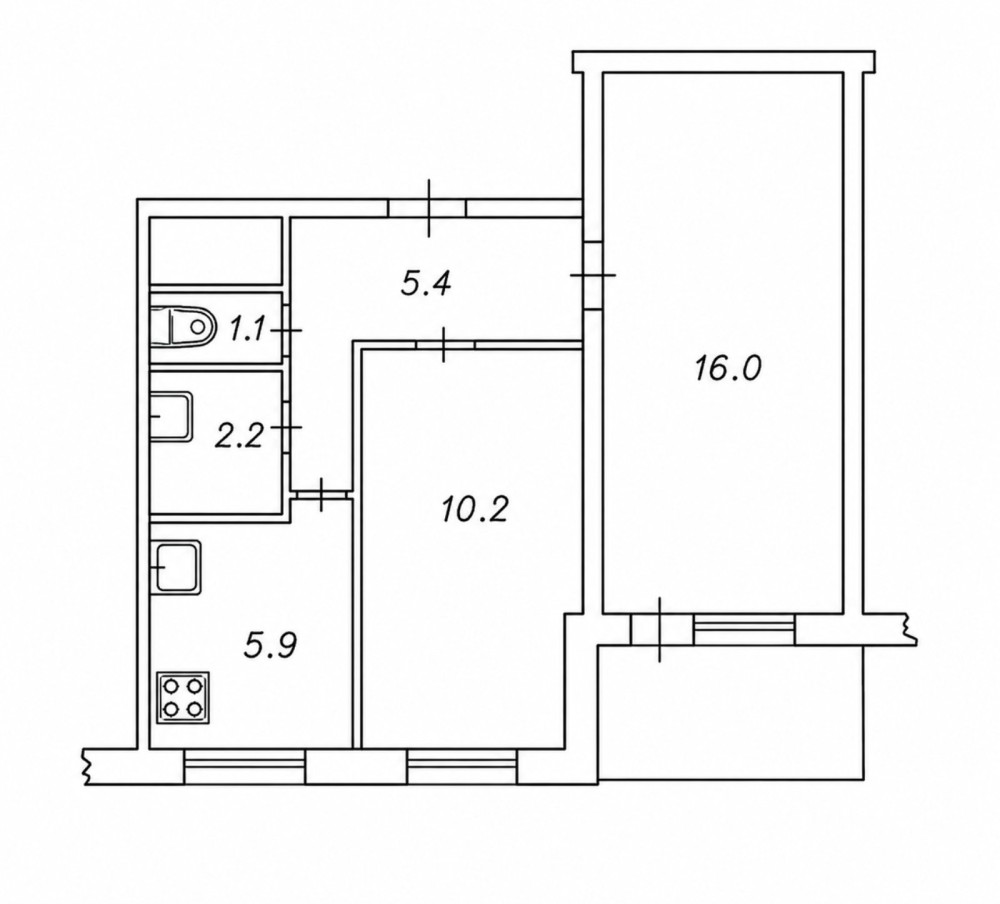 • Площа кухні 5.9 м2