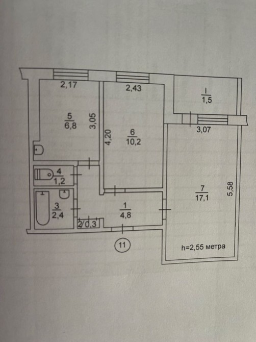 • Площа кухні 6.8 м2
