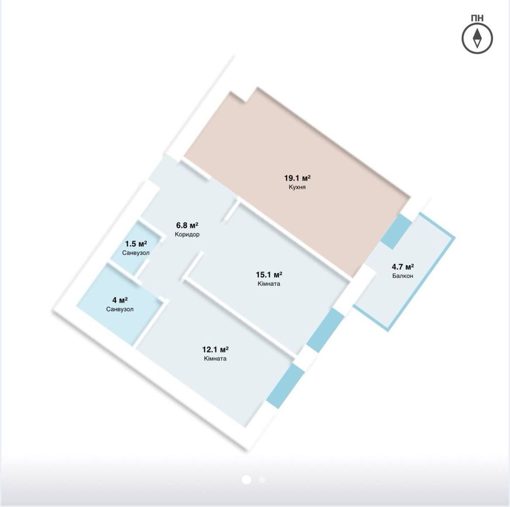 • 2 окремі кімнати та простора кухня