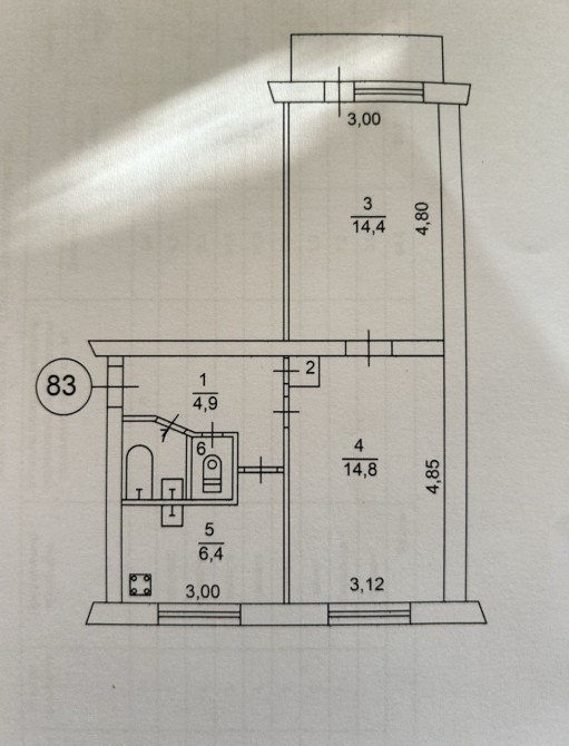 • Площа кухні 6.4 м2