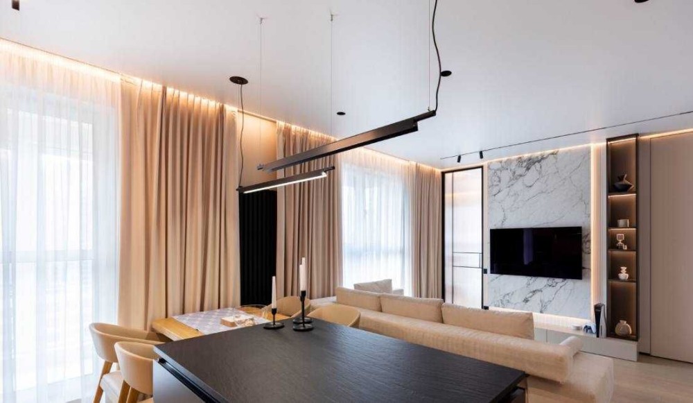 Квартира з дизайнерським ремонтом, виконаним з якісних матеріалів у приємних пастельних тонах — простір виглядає світлим, стильним і дуже затишним.