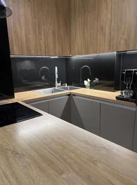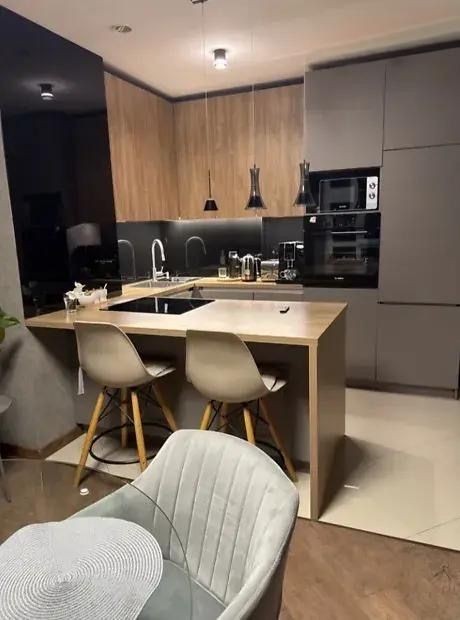 — Вбудована кухня з усією необхідною технікою (духова шафа, мікрохвильова піч, посудомийна машина, холодильник)