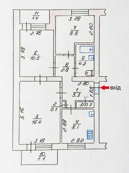 • Площа кухні 8.1 м2