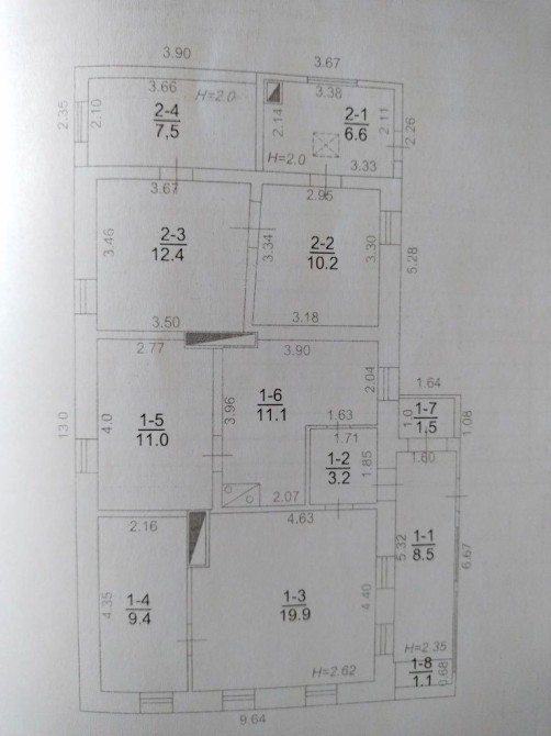 Площа забудови 104.3 кв.м, житлова 60,2 кв.м, газ і вода у дворі, потребує капітального ремонту.