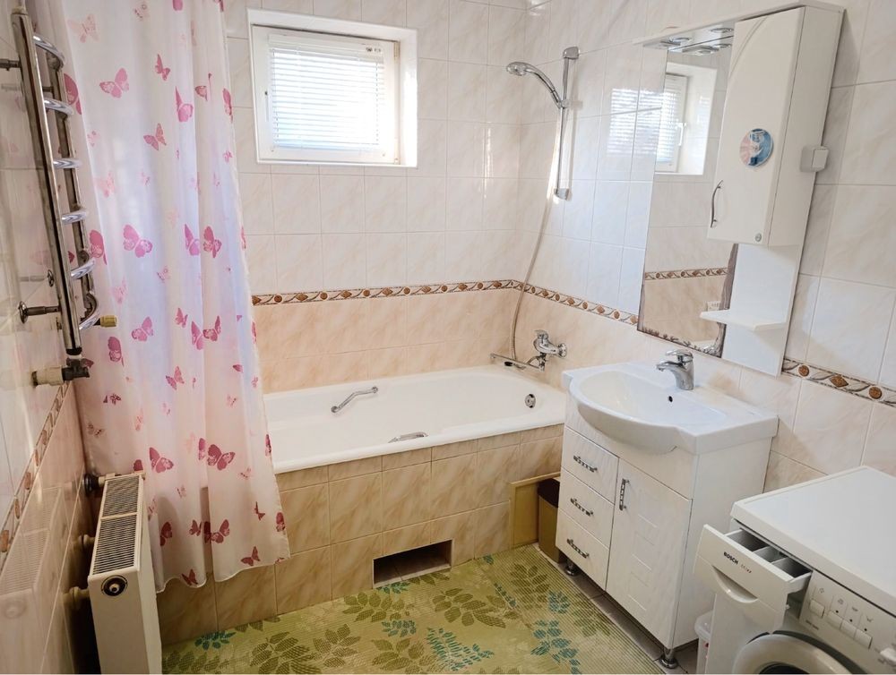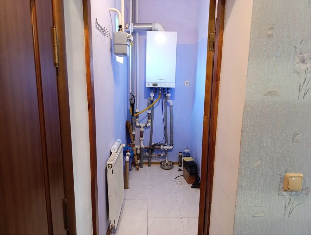 В будинок проведена вода, встановлений двохконтурний котел, відповідно є опалення, і гаряча вода. Є все необхідне для життя. Будинок продається з наявними меблями по кімнатам. На кухні меблі також є, газова плита з духовкою, холодильник та мікрохвильова піч.