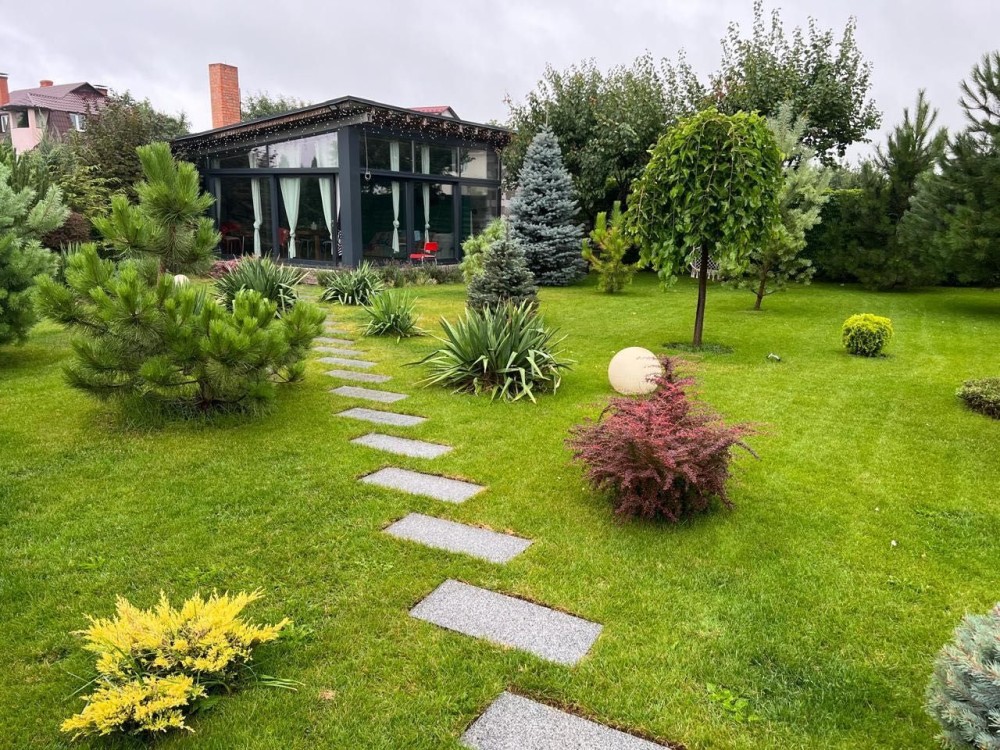 Дуже велика прибудинкова територія 28 соток з басейном.