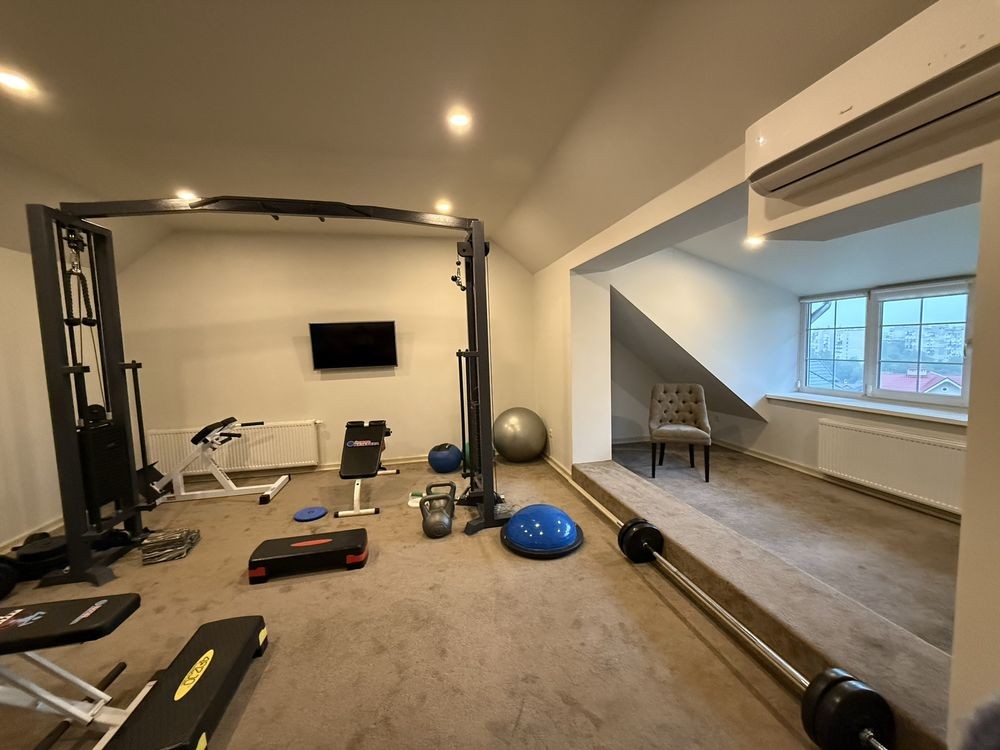 • Комфорт Кондиціонер, Ванна, Душова кабіна, Балкон, Тераса, Камін, Сигналізація, Охоронювана територія, Гараж, Автоматичні ворота, Допоміжні приміщення, Спортзал, Басейн, Сонячні електропанелі