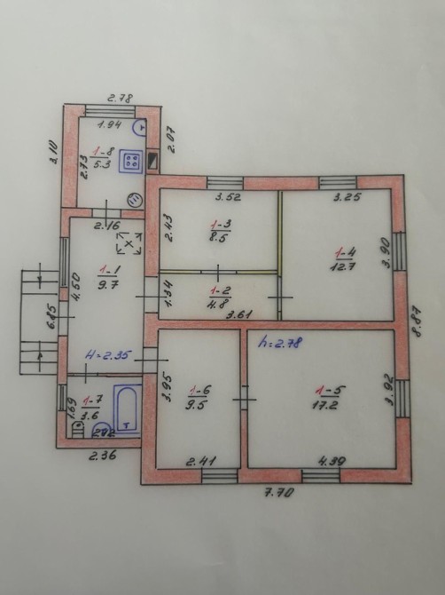 Продаю будинок цегляний, 71.3/47,9/6, чотири кімнати, с/у сумісний. Електрика світло 3 фази, лічильник день-ніч, двоконтурний італійський котел, є бойлер, також є твердопаливне опалення, вода міська, каналізація вигребна яма (є можливість врізатися в міську каналізацію). Ділянка приватизирована 6 соток, сарай, гараж на два авто. Будинок потребує ремонту. Поряд вся інфраструктура.