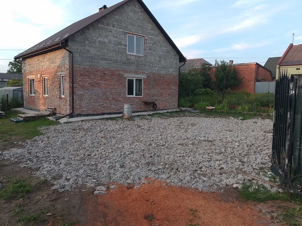 Продам новий будинок 2022 року на Нижньому ДНСі. Два поверхи плюс підвал і холодне горище. Газоблок Д-400 вкритий металочерепицею, обштукатурений і пофарбований, перекритий монолітним залізобетоном. Площа будинку 104 метри. Перший поверх: велика кухня 30 кв.м. з панорамним склінням і виходом на задній двір, передпокій, коридор, перший санвузол. Другий поверх: три житлові кімнати, другий санвузол, сходовий марш. У підвалі котельна, на горище розкладна драбина. Заведена вода зі свердловини 85 метрів, водовідведення в центральну каналізацію. Електроенергія 20 КВт. Змонтована система водяних теплих підлог і радіаторів, електричний котел на 10 КВт. По усьому будинку виконана розводка електрики. Стіни перетерті, металопластикові вікна з теплими скосами, в обох санвузлах розведена і змонтована сантехніка, укладений кахель, душова кабіна на першому і ванна на другому поверсі. На першому поверсі поли викладено плиткою, на другий закуплено і залишиться ламінат, також закуплені і залишаться вуличні світильники та деякі інші матеріали. Залізобетонні сходи на другий поверх викладені керамогранітом. Ділянка 2.5 сотки, обгороджена, відкатні автоматичні ворота. Двір вимощений тротуарною плиткою, змонтовано відведення стічних вод в дренажний колодязь. Залитий фундамент і колони під бесідку і барбекю. З вікон і бесідки відкривається чудовий панорамний краєвид на зелену зону річки Рось. Ціна: 160.000 у.о. Торг. Запрошуємо до співпраці продавців і орендодавців нерухомості. Агенція нерухомості пропонує повний перелік операцій з нерухомістю та супровідною документацією. Купівля-продаж, оренда, обмін житлових та комерційних об’єктів, земельних ділянок. Оцінка майна ринкова та для оподаткування. Технічні паспорти. Узаконення самочинного будівництва, добудови, перепланування. Початок будівництва та ввід в експлуатацію. Землевпорядні роботи: кадастровий номер, приватизація, розподіл, об’єднання, зміна призначення. Кредитування під заставу нерухомості. Безкоштовно приймаємо заявки від продавців та орендодавців. Гарантія конфіденційності. Юридичний супровід. м.Біла Церква Тел.(097)-879-80-99