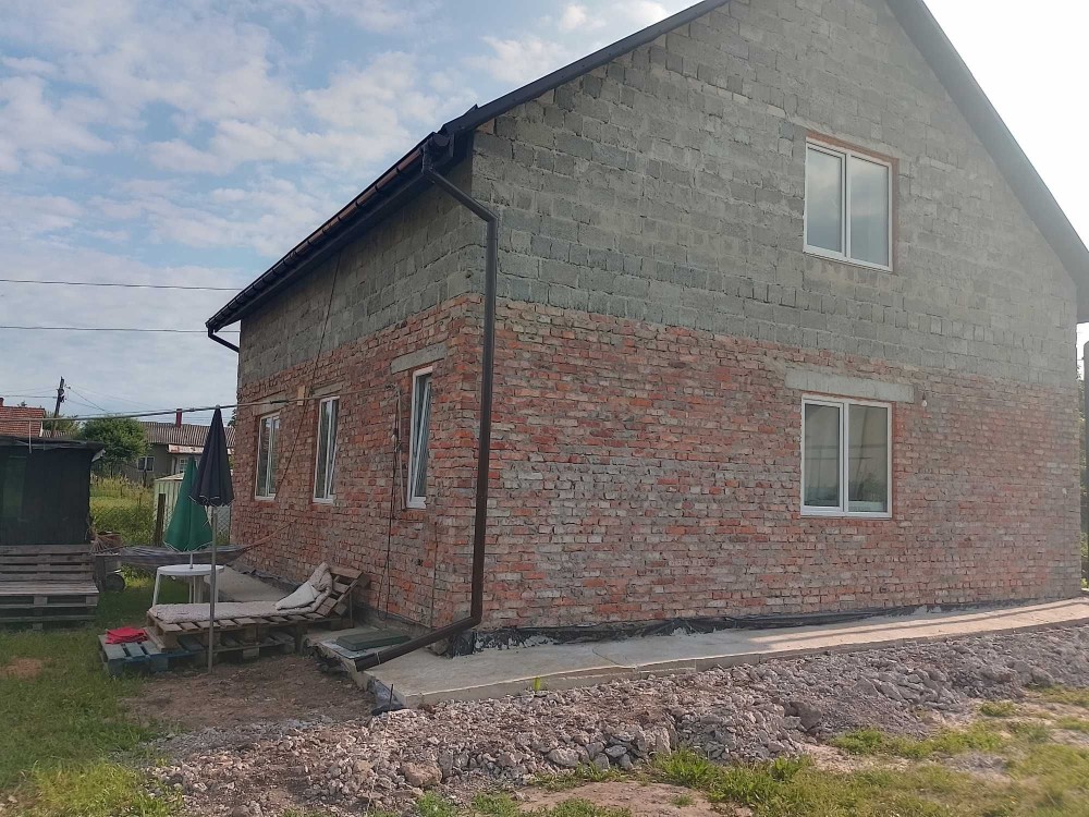 Новобудова,проведені комунікації світло,газ,вода каналізація септик.Будинок в середині пощикатурений,світло все розведене розетки та вимикачі встановлені.Встановлені двох камерні металопластикові вікна.