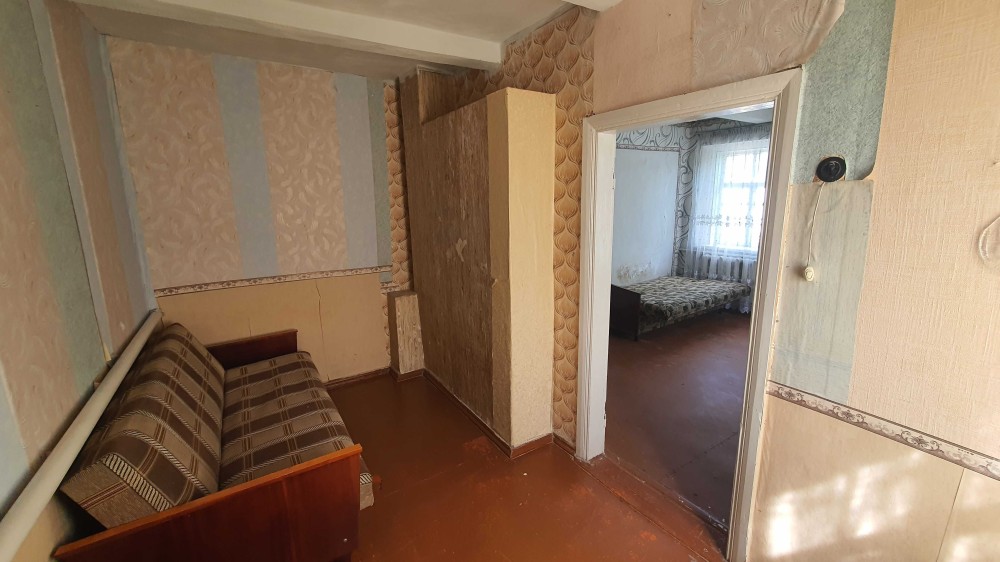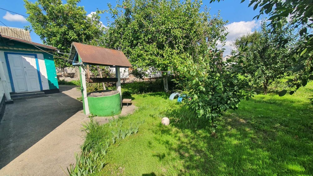 Будинок глинобитний, обкладений цеглою, загальною пл. 60 м.кв, з газом, світлом (заведено 380 Вт.), та своєю криницею в дворі.