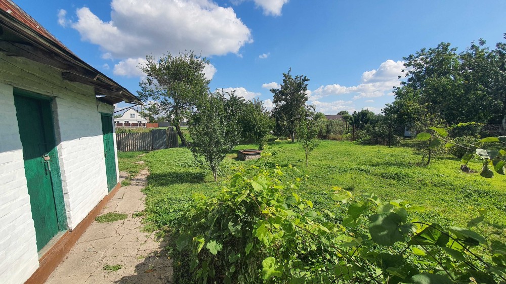 Розташований на ділянці 18 сот, в середині села, з місцем для заїзду авто. Складається з 3-х житлових кімнат, віранди, кухні, погребів, та господарчих споруд.