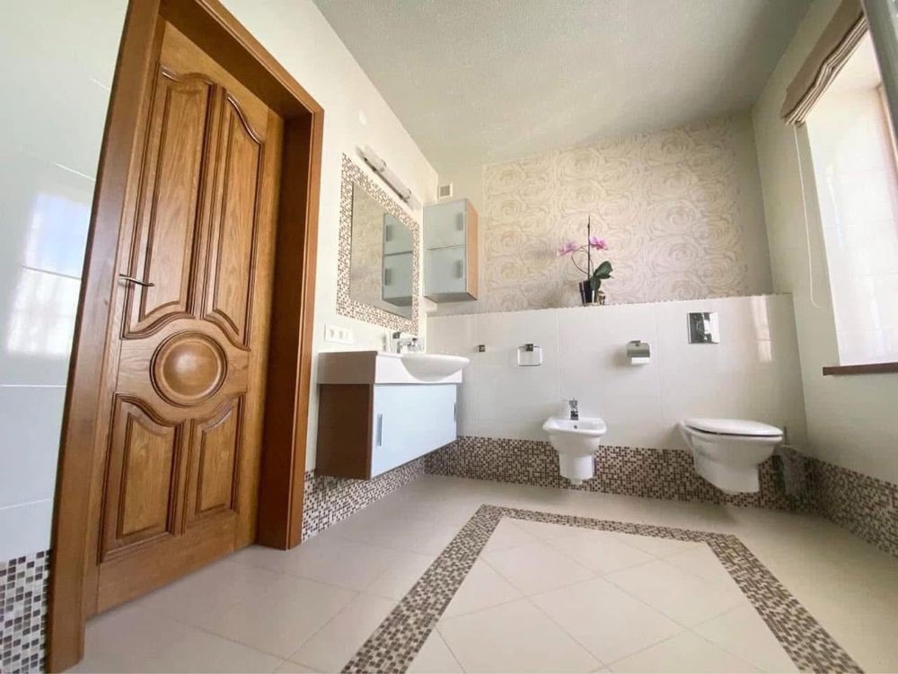 - Всередині будинку зроблений дезайнерський ремонт в світлих тонах з дорогих, якісних матеріалів.