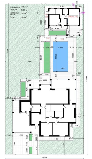 Є технічний проект ділянки з басейном та банею.