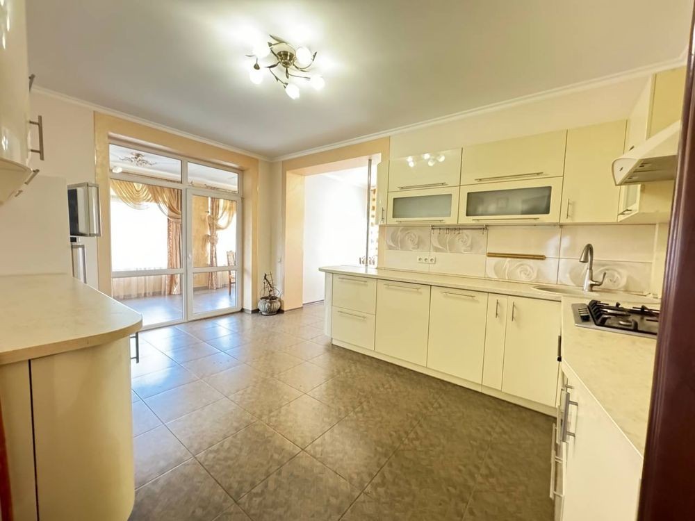 Вітальня також виконана зі смаком, є камін для затишку, зручний дорогий диван, стильна люстра та велике вікно, що дарує багато природного світла. Ідеальне місце для відпочинку або зустрічей із друзями.