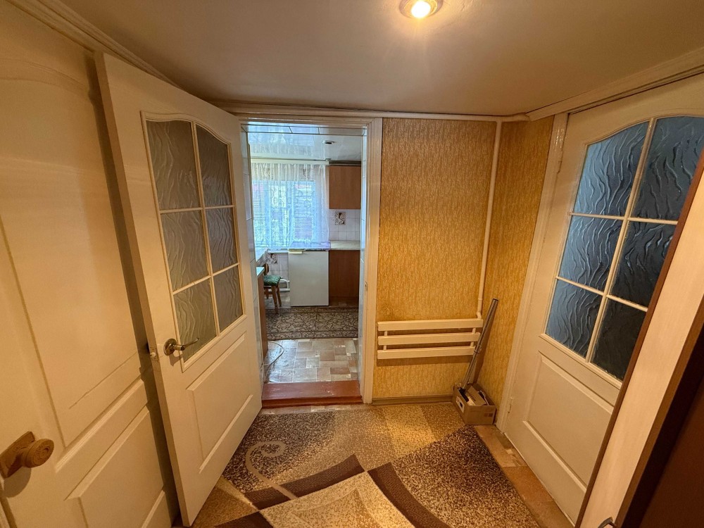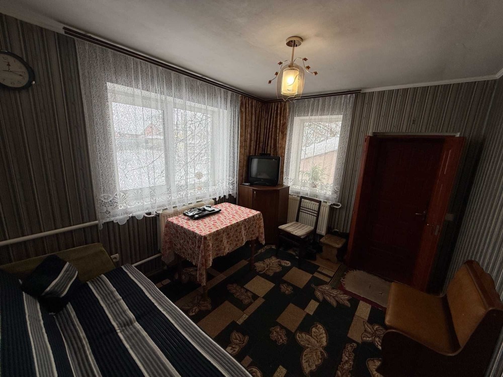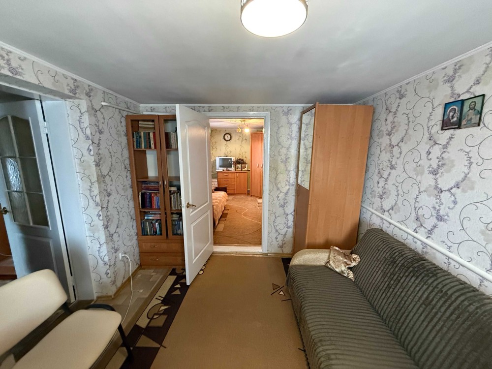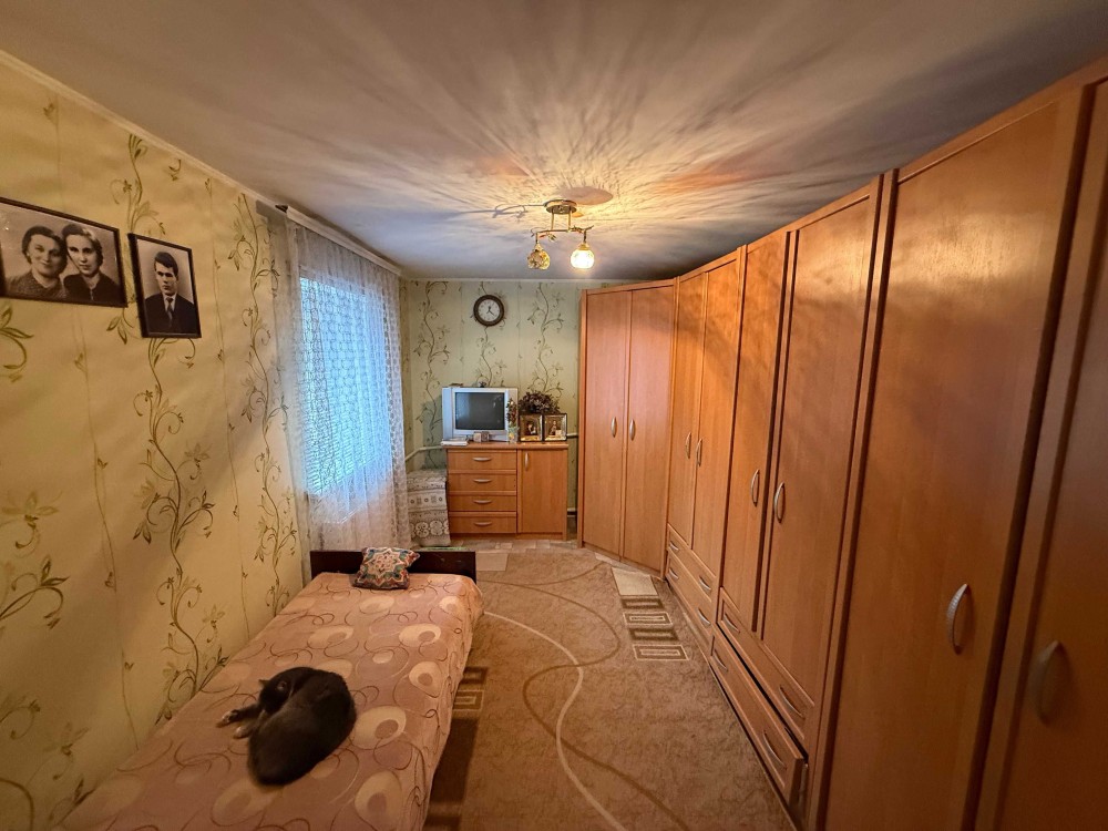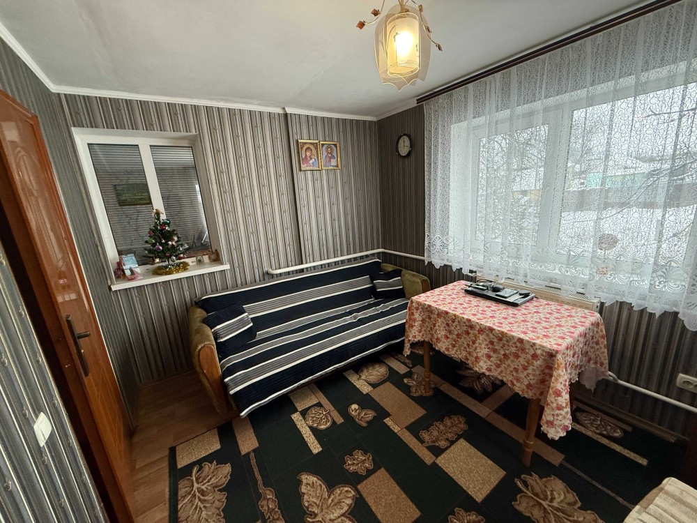 Продається частина будинку, із своїм двором та земельною ділянкою. Загальна площа 48.2м.кв., житлова 23.8м.кв., дві кімнати, кухня 8.5м.кв., веранда 9.4м.кв., коридор 3.8м.кв., санвузол 2.9м.кв.. Зроблений капітальний ремонт. Стіни саман, плюс цегла, утеплений фундамент, підлога стяжка, плюс утеплювач і лінолеум. Вікна метало пластикові. Стіни і стелі гіпсокартон, шпалери. Двері нові, дерев'яні. Санвузол кахель. Централізоване водопостачання та каналізація. Опалення газовий котел, може працювати без електрики. Будинок утеплений, економний по опаленню. Двір викладений плиткою, погріб. Сарай на дві частини, в одній літня кухня з газом, електрикою. Земельна ділянка в користуванні 6 соток, садок із фруктовими деревами. Поряд магазин 200 метрів, кафе, автобусна зупинка 100 метрів. До центру міста 800 метрів, до Ощадбанку 600 метрів. До будинку асфальт, поряд річка та парк.