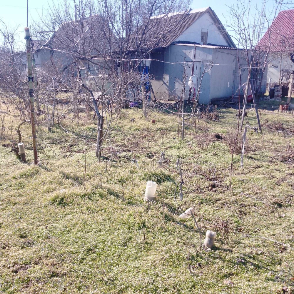 На участке есть городской водопровод, полив, 6 сотров винограда, смородина и плодовые деревья.