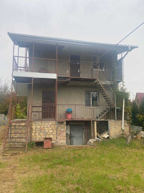 На ділянці розташовано два будинки: основний житловий і господарське приміщення (сарай). Основний будинок двоповерховий, з цегли, утеплений. Усередині потребує завершення внутрішніх робіт. Під будинком є підвал і погріб.
