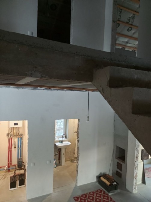 - Смонтированы инженерные сети: электрический щит, разводка воды и отопления (коллектор, радиаторы на этажах), настенный котёл установлен.