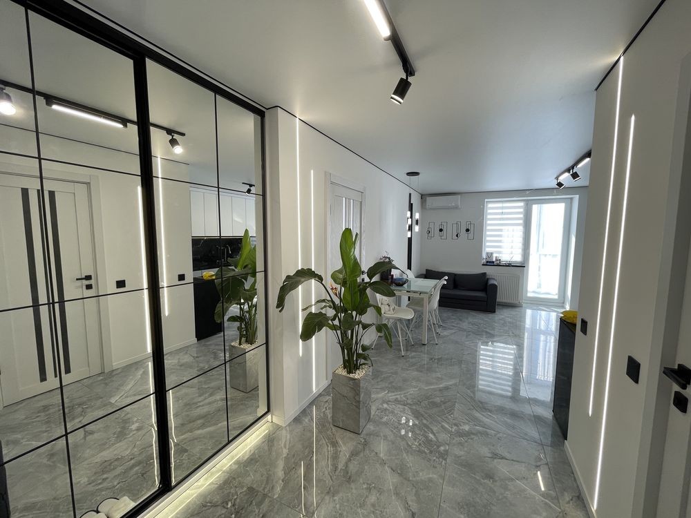 Продається стильна сучасна квартира у місті Тернопіль, ЖК «Чернівецький», район Оболоня, вул. Чернівецька, 71. Простір, у який закохуєшся з першого погляду: дизайнерський ремонт у трендовому мінімалістичному стилі, світла кольорова гама, мармурові текстури, чорні акценти та продумане освітлення створюють відчуття дорогого й комфортного житла. Загальна площа квартири — 45 кв. м, житлова кімната — 13 кв. м, простора кухня-вітальня площею 20 кв. м ідеально підходить як для щоденного життя, так і для прийому гостей. Санвузол суміжний, виконаний у сучасному стилі з душовою зоною та ексклюзивним умивальником ручної роботи з керамограніту, що підкреслює індивідуальність інтер’єру. Квартира має великий балкон і продумане зонування простору. Повністю укомплектована меблями та технікою: телевізор, два кондиціонери, пральна машина, посудомийна машина, а також облаштована окрема стильна б’юті-зона. Житло готове до заселення без додаткових витрат та стане чудовим вибором як для комфортного проживання, так і для інвестиції. Запрошую на перегляд.