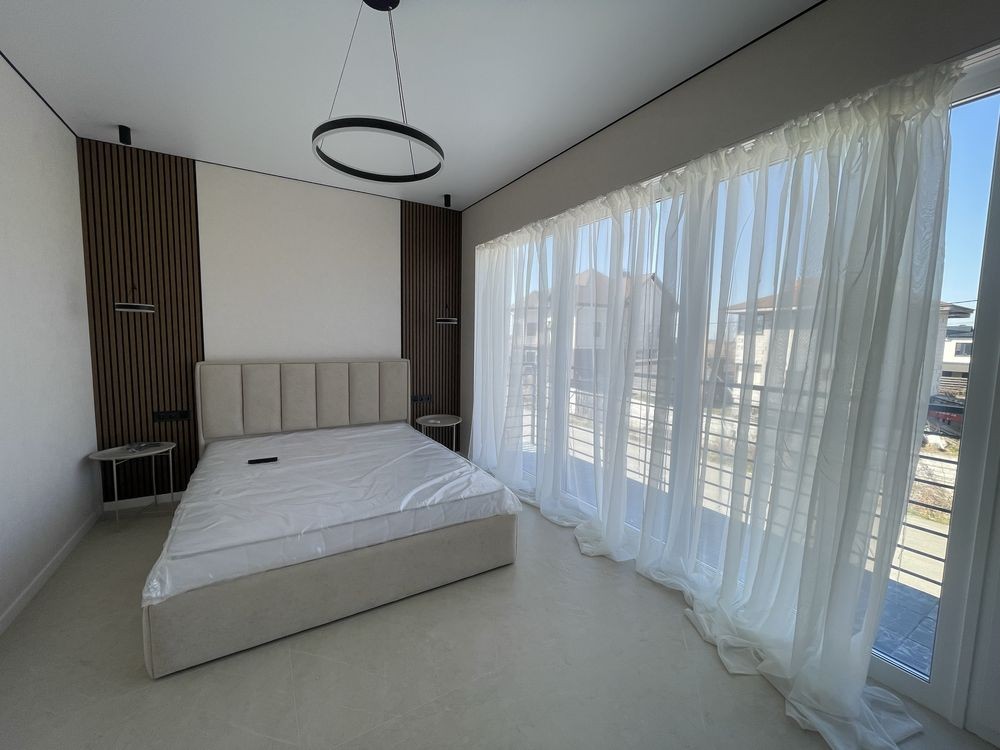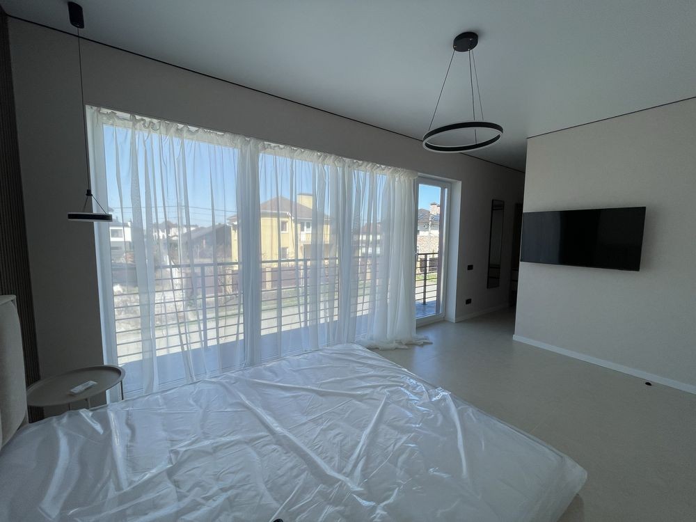 В будинку виконаний дизайнерський ремонт. Повністю укомплектований необхідною побутовою технікою ( кондиціонер,телевізор, холодильник, духова шафа, мікрохвильовка, варильна поверхня (газова),посудомийна машина). В спальній кімнаті є ліжко з ортопедичним матрацом. Окремої уваги заслуговують сходи з підсвіткою, які надають свого затишку.