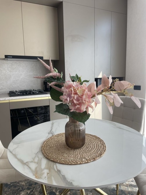 -простора кухня-вітальня( розділена на дві зони , перша - робоча, друга- для відпочинку).
