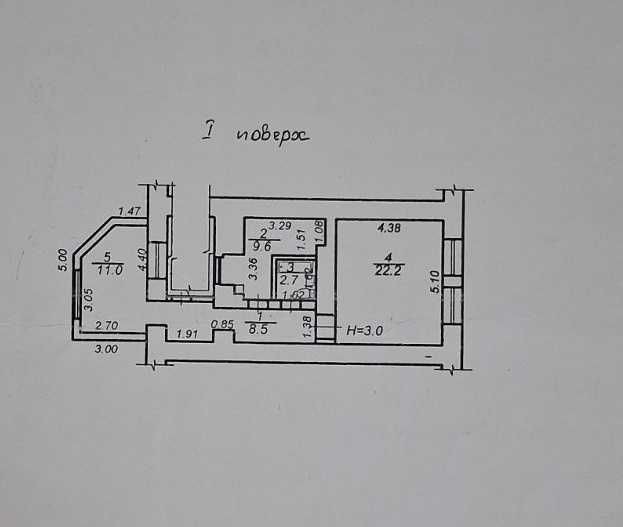 Високий перший поверх, окремі кімнати, кухня 10 квадратних метрів.