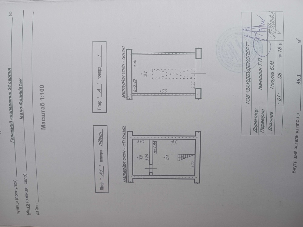 Гараж має площу 36.1 м2.