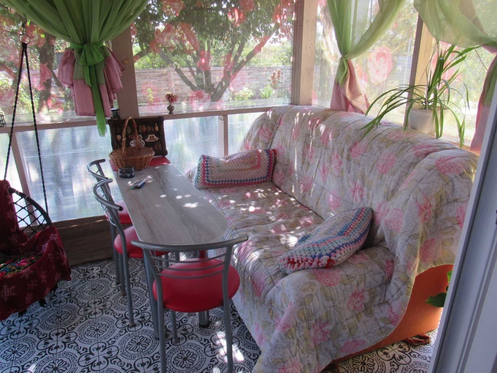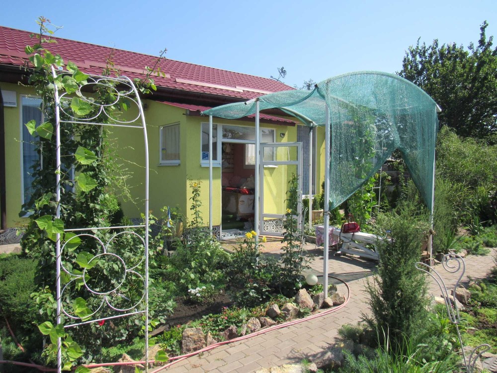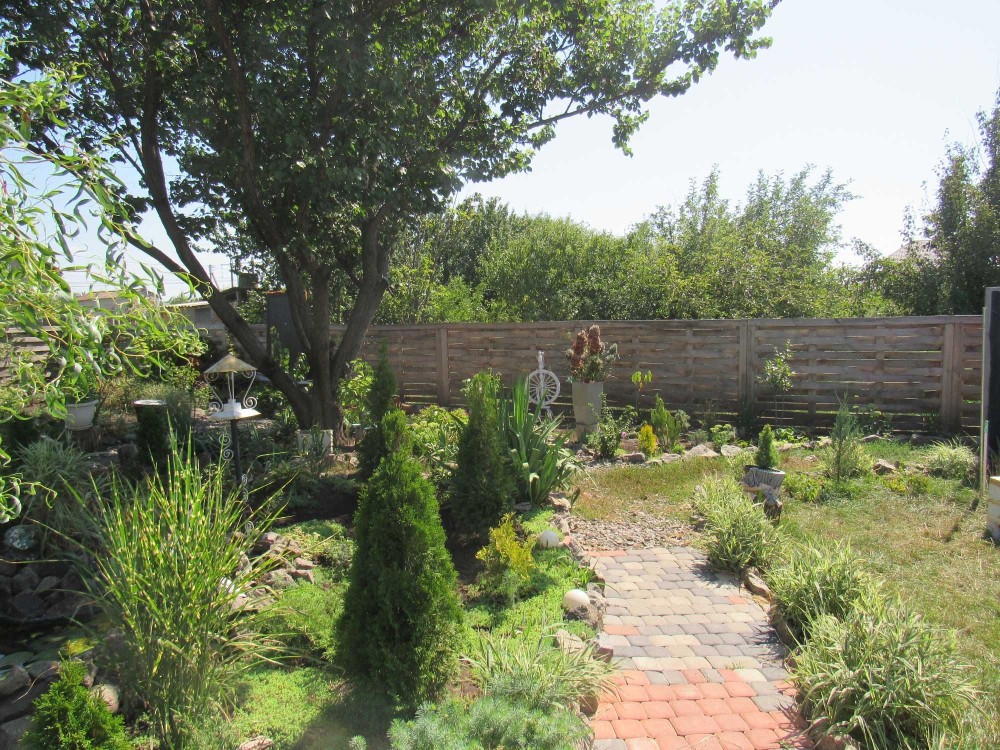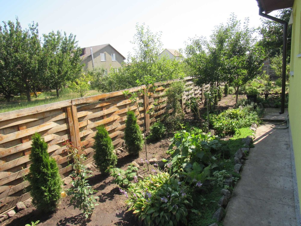 У дворі молодий садок: груші, яблука, черешні, вишні, абрикоси, туї, рози, малина та багато іншого.