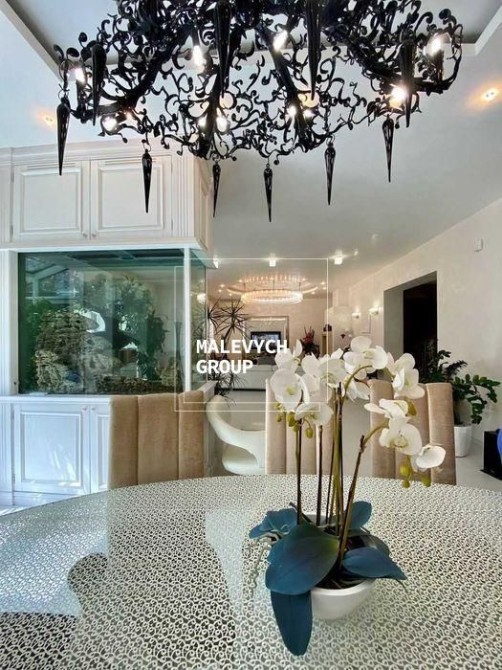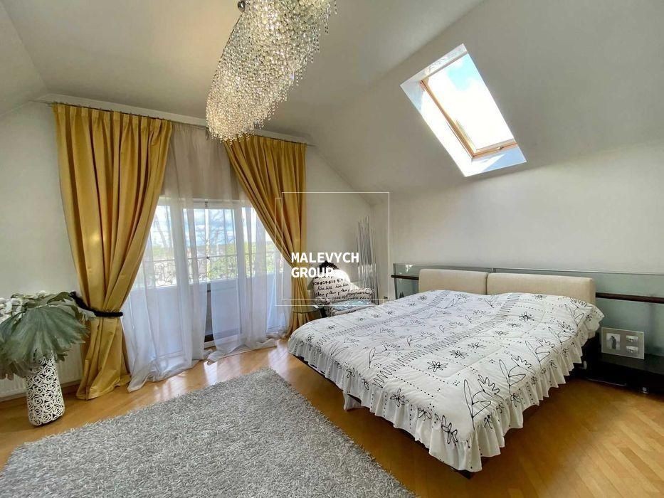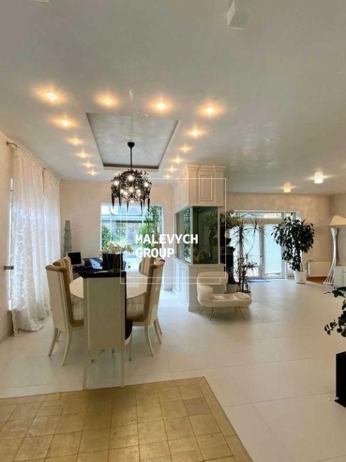 3 спальні, кабінет, вітальня з каміном, велика кухня поєднана окремою просторою їдальнею; спортивна зала, 3 ванні кімнати, ігрова кімната.