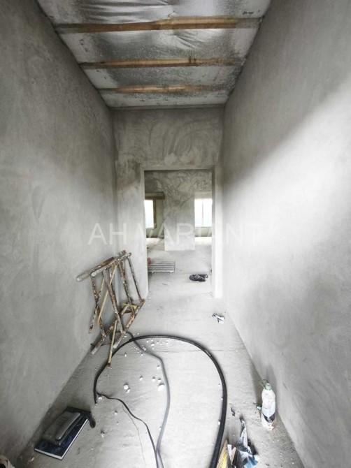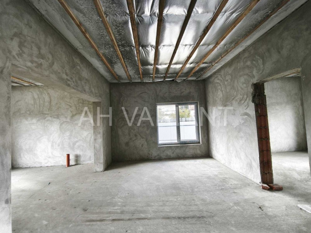 – Всередині перестінки з цегли, стіни поштукатурені, заведений силовий кабель без розводки, заведена каналізація без розводки, чорнова стяжка.