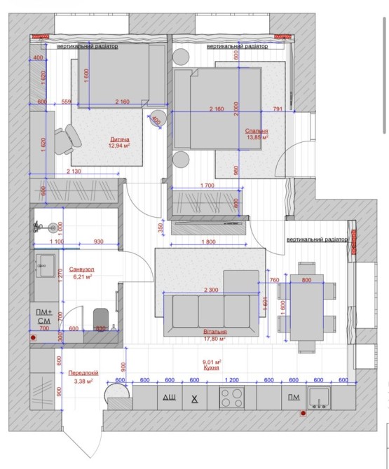 Дві окремі кімнати, кухня-хол