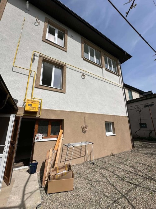 Напівособняк на 3 поверхи. На кожному поверсі окрема квартира на 3 кімнати з власним входом, кухнею та санвузлом. В кожній квартирі хороший сучасний ремонт та є всі зручності. Також є хороші меблі, побутова техніка та навіть посуд. Є всі комунікації - світло 3 фази, вода та газове опалення. Велика огороджена територія, яка знаходиться під охронною сигналізацією та відеонаглядо. На території є басейн та сауна ( на даний момен в стадії ремонту). Поряд є магазини.