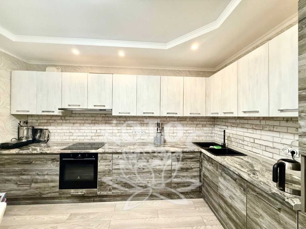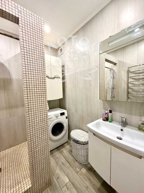 Ремонт виконаний у сучасному стилі з використанням якісних матеріалів: ламінат, натяжні стелі, тепла підлога у санвузлі.