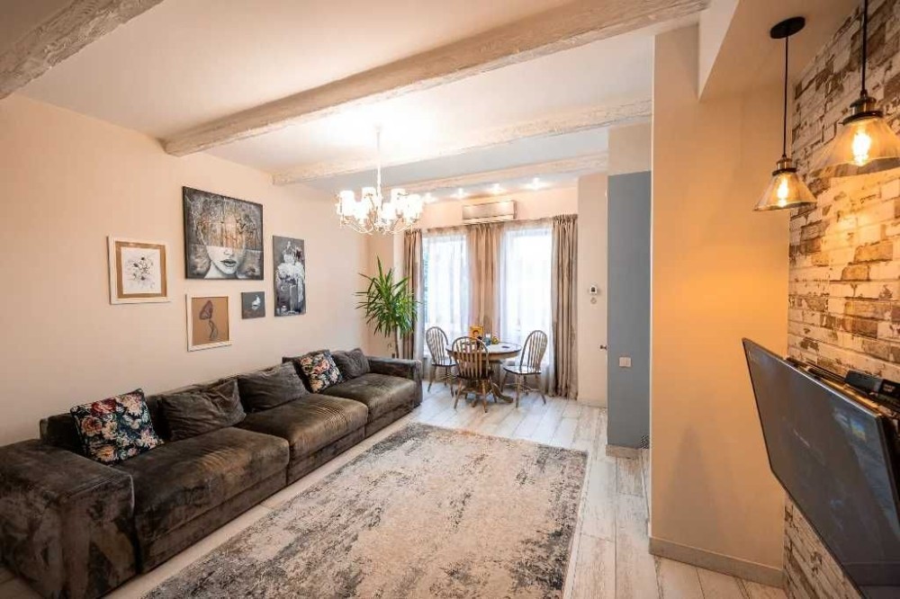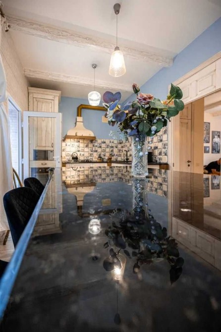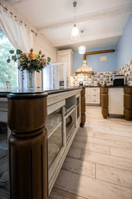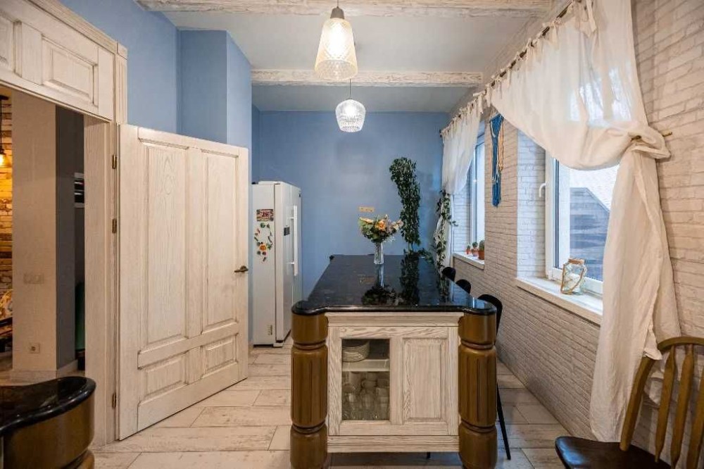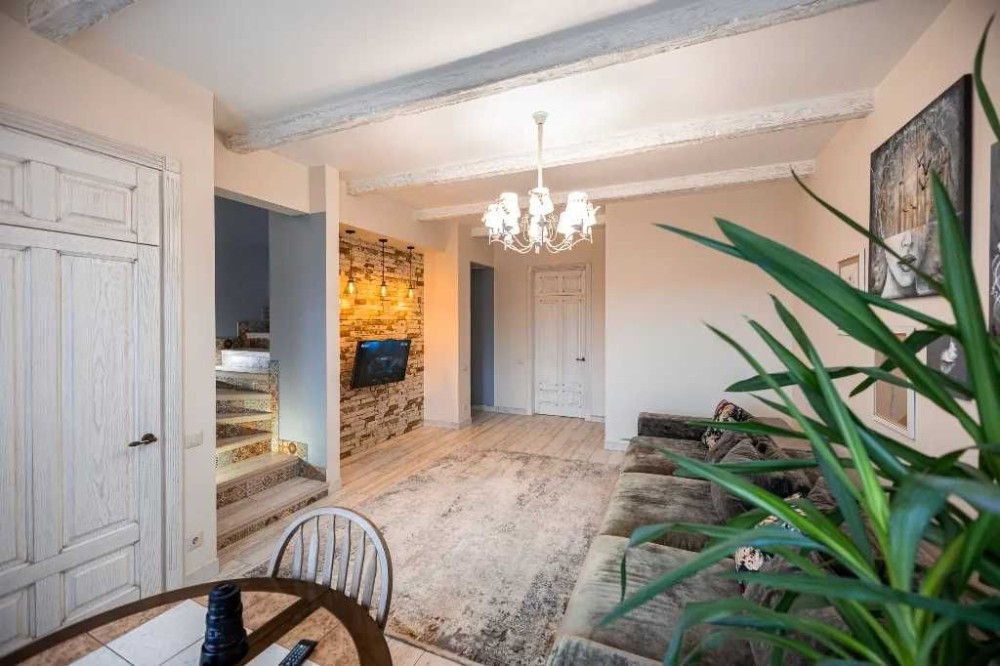 Продается Таунхаус , общей площадью 160.5 кВ.м + терраса 15 кВ.м. в доме состоящем из 5 таунхаусов. До соснового леса 150 метров. Очень тихое и красивое место, чистый воздух, асфальтированная тупиковая улица. Во дворе ландшафтный дизайн, обслуживается садовником. Большая летняя терраса из натурального дерева. Очень качественный ремонт в средиземноморском стиле. Плитка Испания, сантехника Италия. Все двери в доме и кухня изготовлены из натурального дерева Ясень, ручная работа. Столешница натуральный камень Лабрадорит. Дом полностью меблирован, Вся бытовая техника остается в доме. Первый этаж и санузлы на первом и втором этаже теплый пол. На третьем этаже батареи, но в них нет необходимости, теплого пола хватает на весь дом. Экономичный газовый котел. Подготовлено место для твердотопливного котла. Практически новая вся техника Посудомоечная машина (BEKO) , Стиральная машина (AEG), Сушильная (Miele). Двухстворчатый холодильник (Samsung) Недавно установлены два кондиционер/тепловой-насос ( CH ) до -32С. Свет День/Ночьб в доме мощный стабилизатор электричества. Во дворе зарядка для Электро-Авто на 7кв/32А. Вода со скважины очень чистая, сдавали на проверку, можно пить!! Во дворе детская игровая зона, беседка и барбекю. Имеется дизайнерский проект для перестройки гаража в отдельную спальню с санузлом. Год постройки: 2015 Общая площадь: 160,5 кв Этажей: 3 Спальни: 2 Санузел: 1.5 Двор: общий 15 соток Терраса: 15 кв. Отопление: газ Вода: собственная скважина Остановка общественного транспорта: 200м Школа: 3км Дет сад: 1км Центр города: 15км