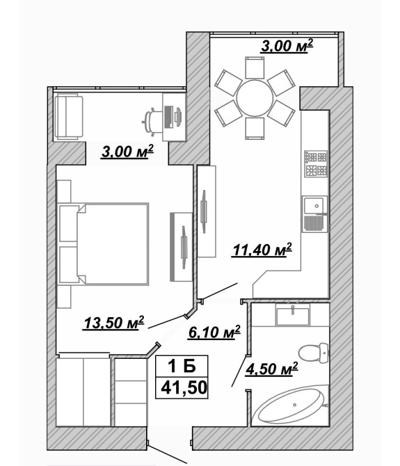• Загальна площа 41.5 м2