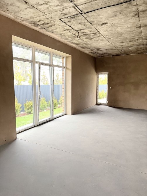 Висота стелі - 3.00 Наповнення: - стяжка - штукатурка - тепла підлога - розведена електрика та сантехніка Комунікації: - газ - електрика 20 кВт, 380в - свердловина 42 м із насосом (вода заведена в будинок) калізаційний септик, дренаж дощової води Технологія будівництва: - обліцований кирпичом 120 мм, чорновий кирпич 250 мм, утеплення - перлітом 150 мм. Загальна товщина стін 520 мм.