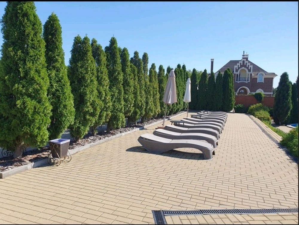 Во дворе имеется кулуарно оборудованная зона барбекю со своим мангалом, 2 бассейна общего пользования взрослый и детский, всего на 9 квартир, отдельно стоящая топочная работающая централизовано на твердом топливе для всего комплекса, а также имеется отдельно оборудованная SPA зона с сауной, бассейном и душевой, где можно прекрасно провести время с семьей или друзьями. Вся территория облагорожена взрослым озеленением, тротуарной плиткой, вечерней подсветкой и придомовой гостевой парковкой.