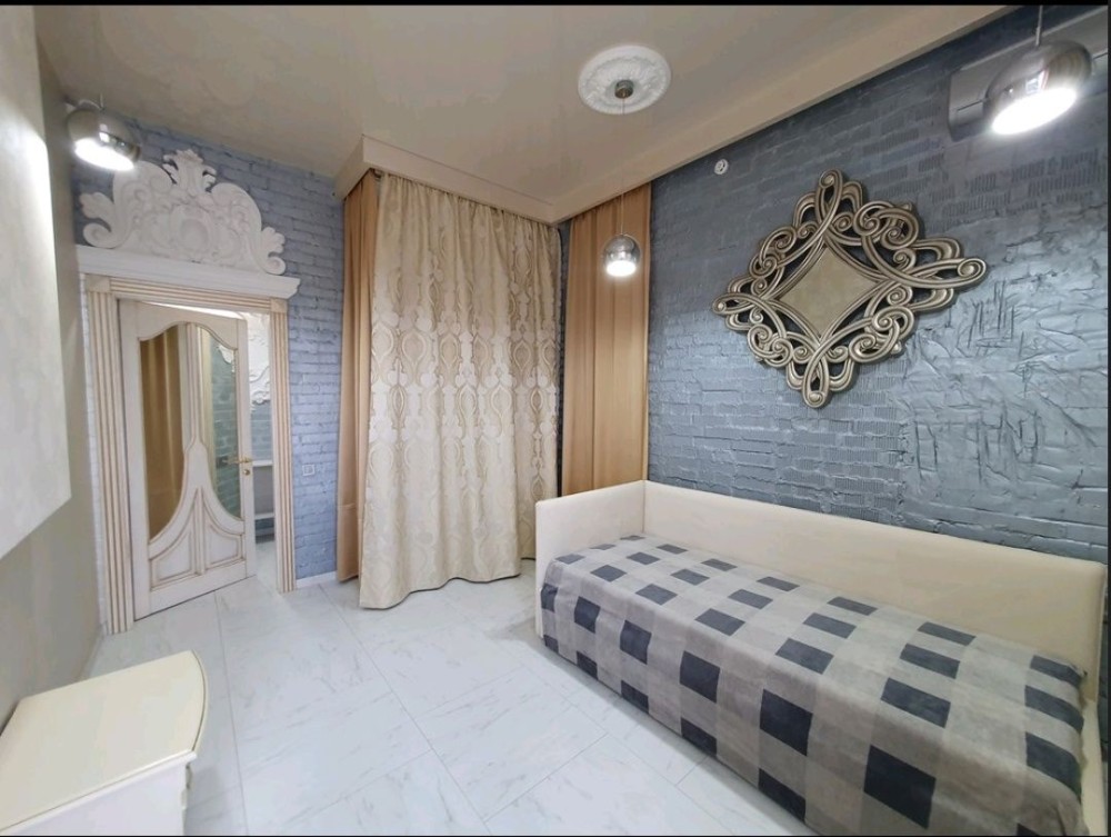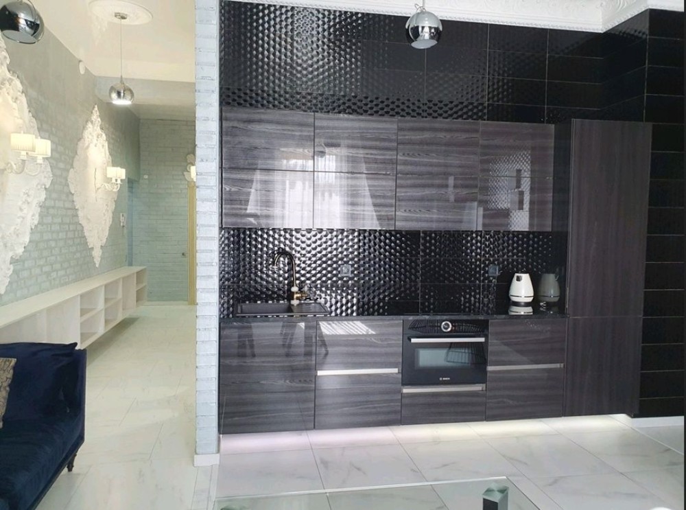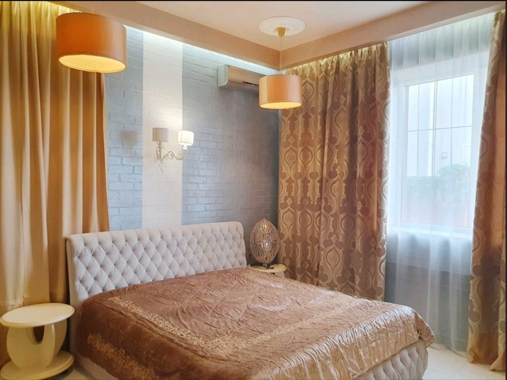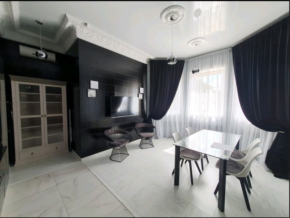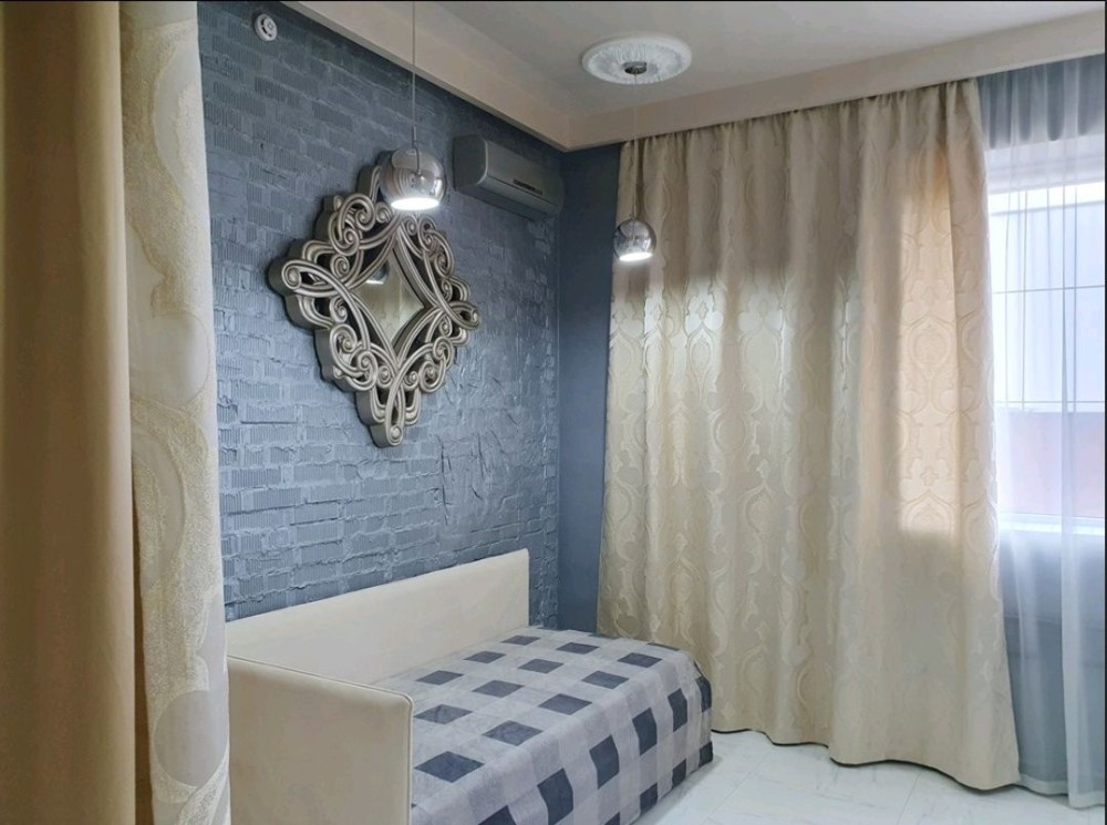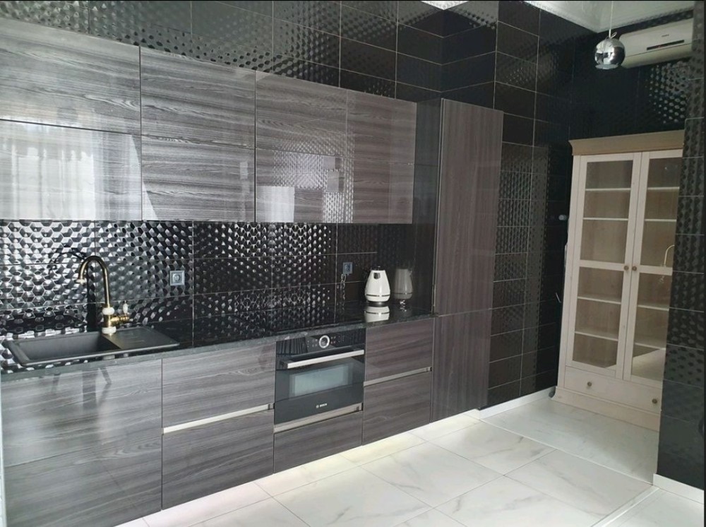 75,3м.кв. 3-х комнатная квартира в одном уровне, расположена на 1-м этаже клубного дома Villa Grazia. Стены кирпичные + облицовочный кирпич, крыша мягкая кровля, металлопластиковые окна, городская вода, централизованное отопление, электричество, канализация септик, скоростной интернет, сигнализация, домофон и так далее. Внутри квартиры выполнен по авторскому проекту стильный эксклюзивный ремонт с индивидуально подобранной мебелью встроенной бытовой техникой, и изысканными аксессуарами. Планировка: Большая просторная гостиная – студия, санузел, 2 спальни, коридор. За квартирой также закреплены 2 крытых парко места в отдельно огороженной территории с автоматическими воротами и видеонаблюдением.