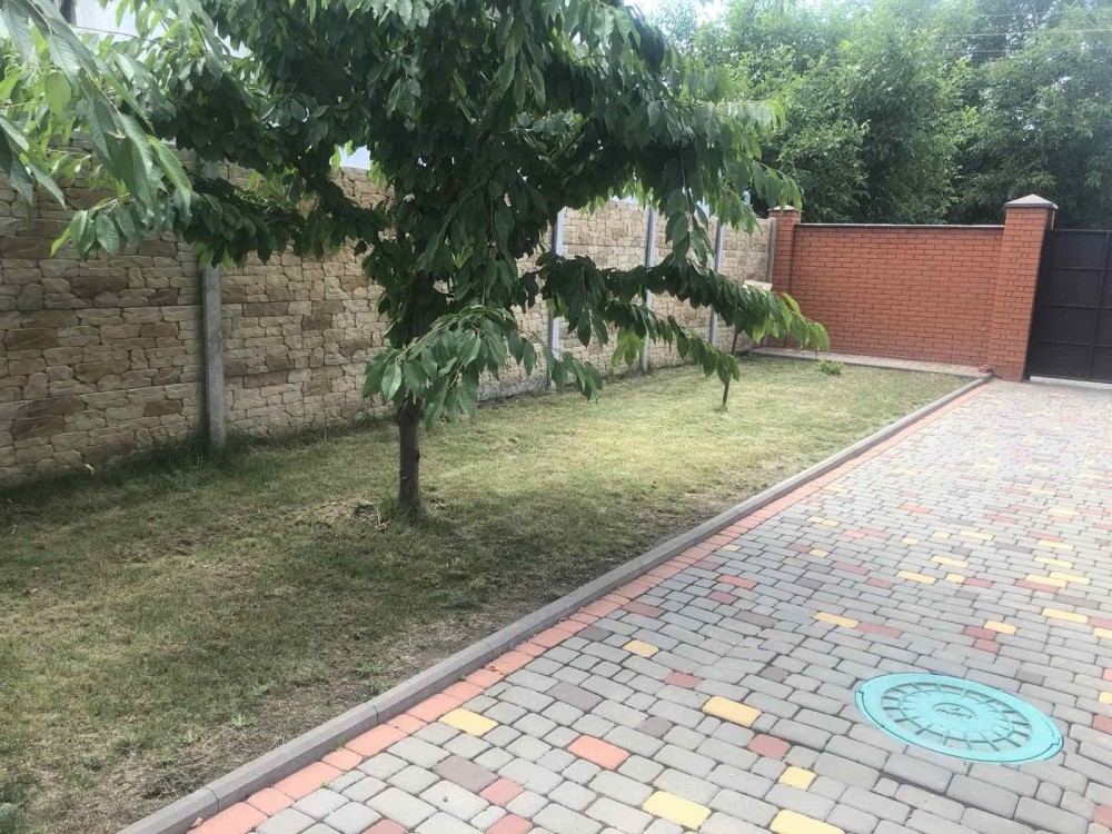 Красивый, ухоженный двор уложен плиткой, газон. Есть место для альтанки или бани.