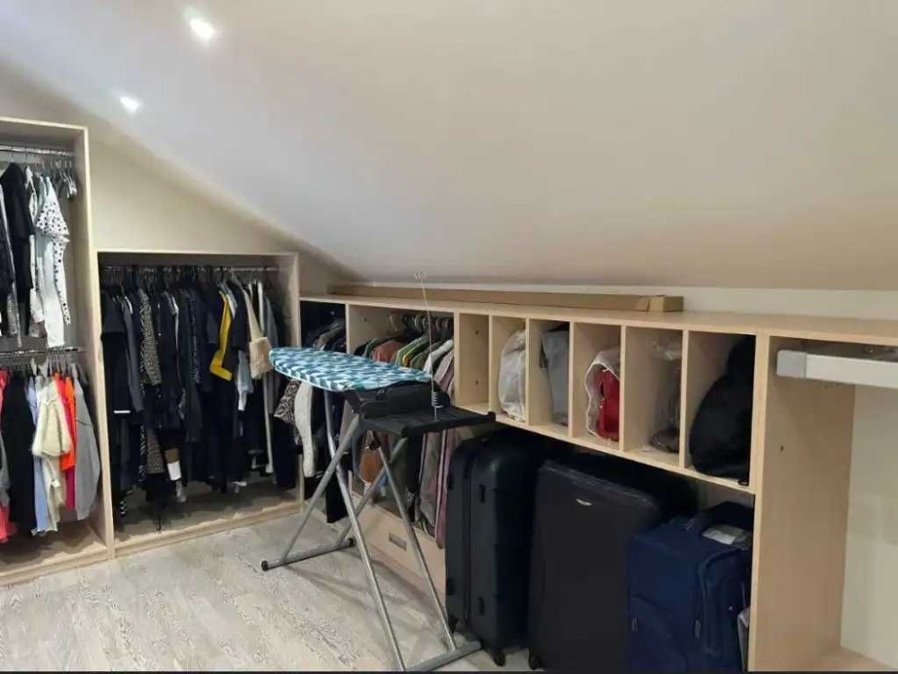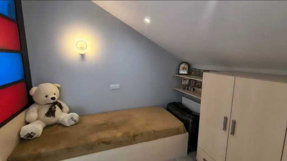 У будинку: перший поверх велика студія зонована на кухню, столову і зону відпочинку, санвузол (з душовою кабіною), коридор з великим вбудованим шкафом, окрема технічна кімната з водонагрівальним приладом, пральною і сушильною машинами. Другий поверх спальня батьків і дитяча, ванна кімната між ними.
