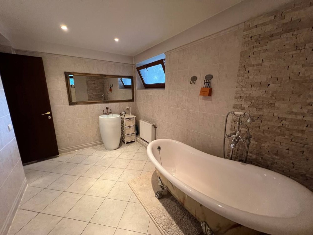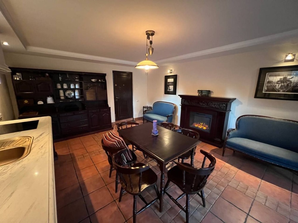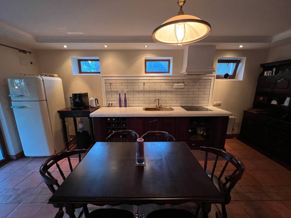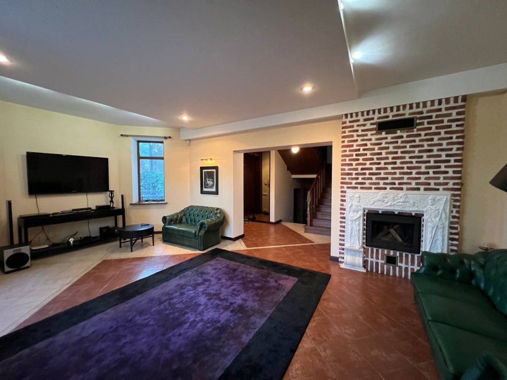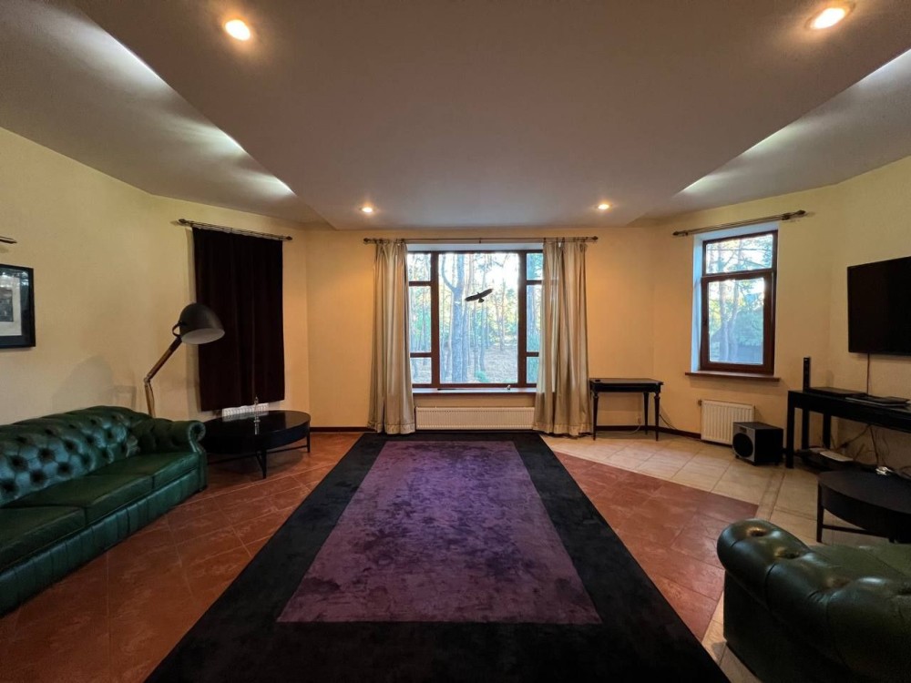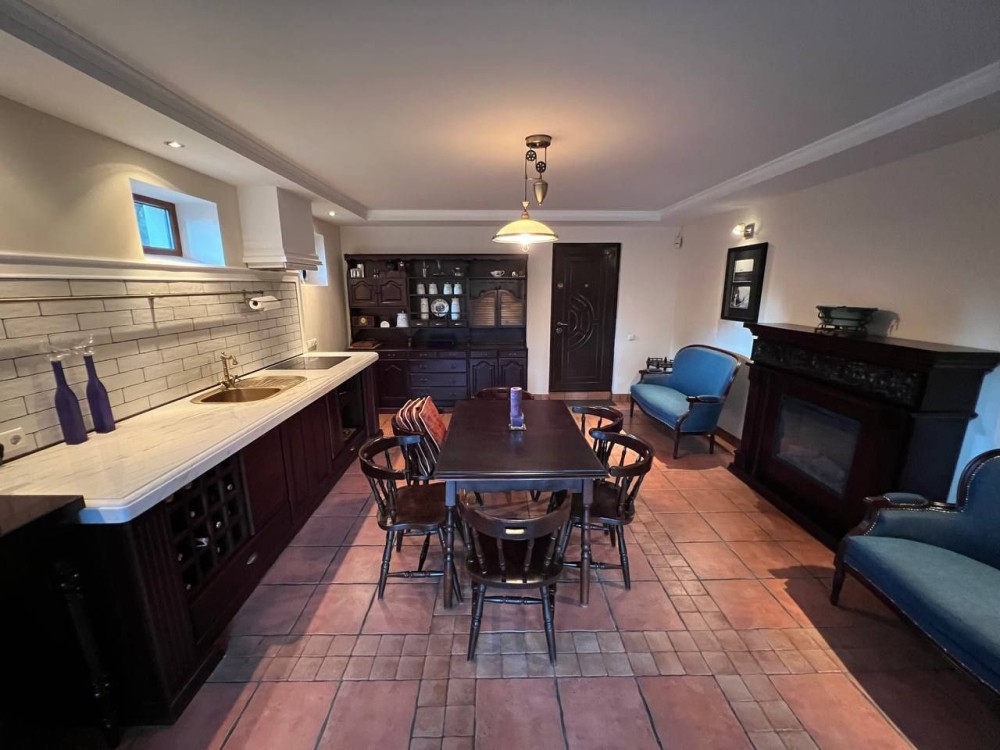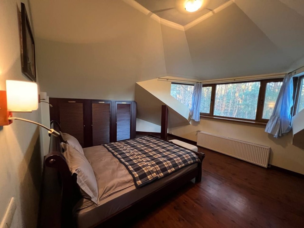 Три просторные спальни,каминный зал с выходом на террасу, эксклюзивная дизайнерская мебель.Кухня с выходом на террасу, столешница из натурального цельного мрамора,на втором этаже застеклённый панорамными окнами балкон.Два санузла.Лестница из натурального дуба.