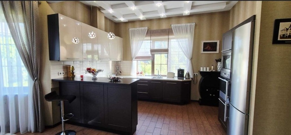 Опалення електричне-котел 15 кВт "Protherm" (в експлуатації один сезон), підключено тариф "електроопалення" + "День-ніч". Будинок повністю укомплектований меблями та побутовою технікою. Тепла підлога, діючий камін. Дві свердловини із системою очищення води. Заведено 380 Вольт. Обладнання резервним електроживленням. Відеоспостереження, сигналізація.