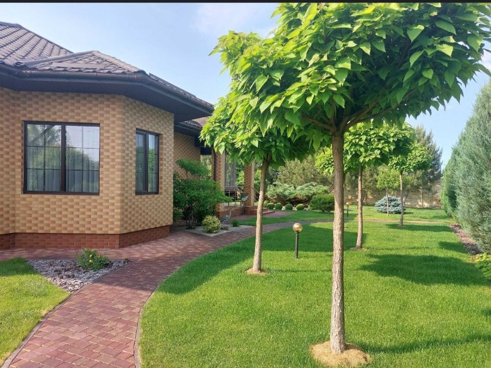 Автоматичний полив по всій ділянці. Мiсце для вiдпочинку в саду з тандиром, зоною барбекю. На території газон, безліч хвойних рослин та плодових дерев (персики, черешня, яблуні, груші, сливи), виноградник, ожина, суниця та ін.