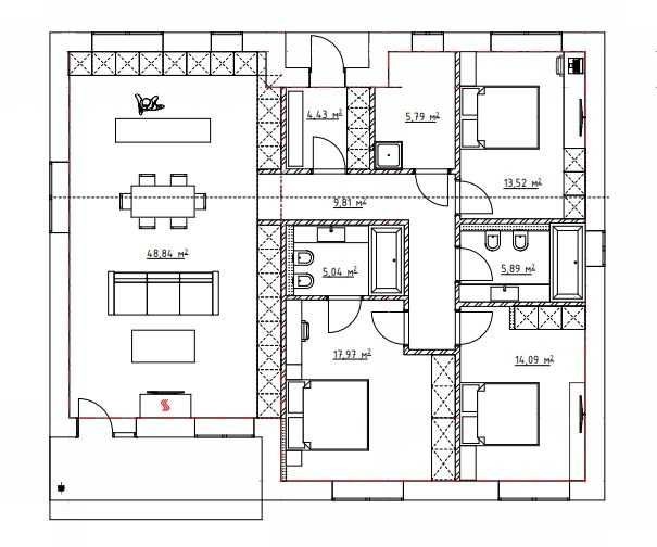 – 3 спальни + просторная кухня-гостиная