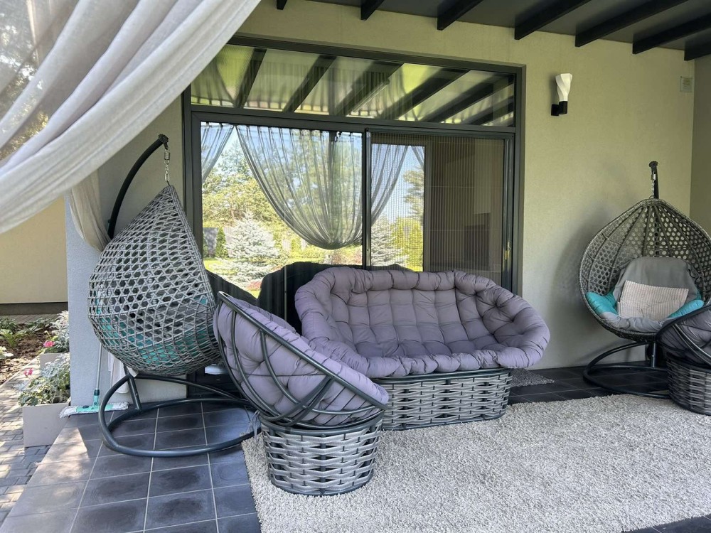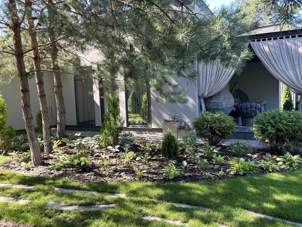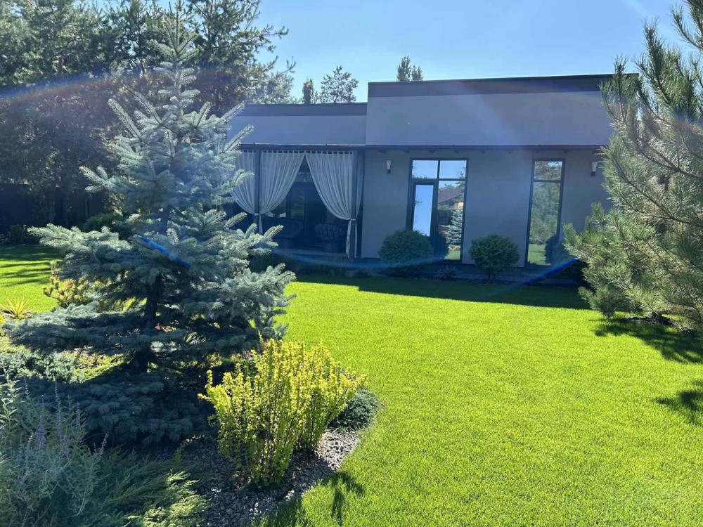 Представляет собой: дом 197м2 снаружи и внутри 140м2+20м2 терасса+37м2-гараж на 1 авто, 20 сот.приват участок огорожен капитальным забором, автоматические ворота, двор выложен плиткой, озеленение и освещение территории, видеонаблюдение выведено на телефон, сигнализация. При постройки дома были использованы дорогие, высококачественные материалы, известных европейских производителей, так как он строился для себя по авторскому проекту.