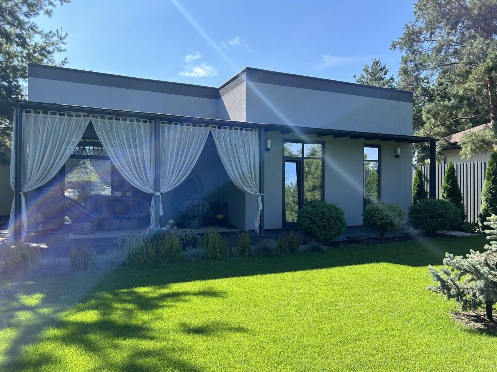 Предлагается к продаже, новый, современный дом в стиле ХАЙТЕК, который расположен в коттеджном городке, окружен сосновым лесом, река Орель 100м. Тихое живописное и экологически чистое место для жизни и в тоже время в непосредственной близости к центру Обуховки и АТБ 800м.
