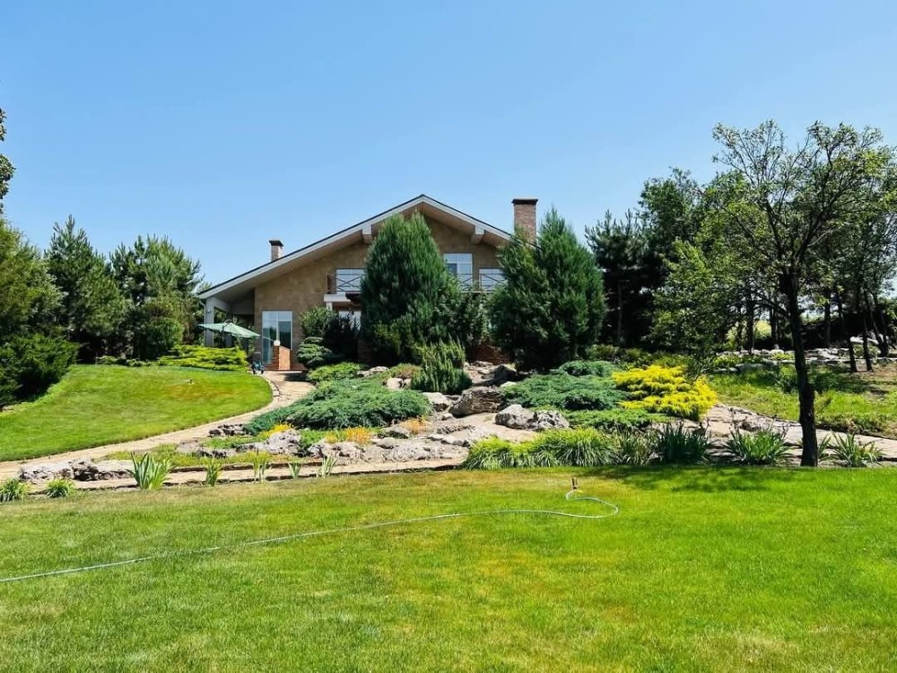 Участок площадью 52 сотки с эксклюзивным ландшафтным дизайном, множеством хвойных растений, обширными газонами, альпийской горкой. Вся эта красота оборудована современной системой автоматического полива Hunter (США). На территории имеется хозблок (45 кв.м) с комнатой для охраны и санузлом, эллинг для катера (40 кв.м), вольер (40 кв.м), крытая стоянка на 4 автомобиля, терраса (80 кв.м), крытая галерея вокруг дома (250 кв.м), огород, причал.