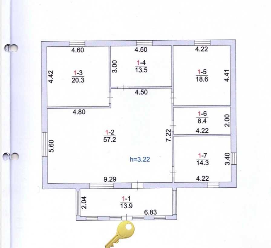 Три окремі кімнати – 20,3 м., 18,6 м., 13,5 м.
