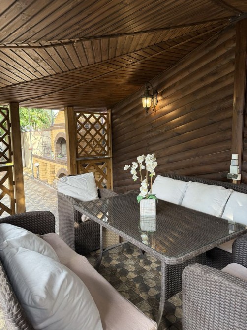 Продається капітальний житловий будинок в охайному, доглянутому стані: заходь - живи. Рік побудови - 2014. Розташування: Київська область, Бориспільський район, село Дударків (район зрубів). Відстань від воріт до ст. метро "Бориспільська" - 22 км, до ст. метро "Лісова" - 26 км. Під'їзд асфальтований. Загальна площа 216,8 кв.м., житлова - 111,6 кв.м., кухня - 12,4 кв.м., відкрита тераса 22 кв.м. В будинку чотири житлові кімнати (спальні), вітальня, два с/вузли з душовими кабінами, котельна, пральна, підвал, гараж на два авто (автоматичні ворота), погріб. Трифазне електропостачання з окремими стабілізаторами (на кожну фазу). Встановлено бензиновий генератор потужністю 6,5 кВт з автоматичним вмиканням у разі зникнення напруги в мережі. Газовий (з джерелом безперебійного живлення) та електричний опалювальні котли, бойлер для підігріву води. Водопостачання - особиста свердловина глибиною 60 метрів з фільтраційною системою очищення води. Чотири накопичувальні ємності (септики): для фекальної води (з вентиляцією) та відведення дощової (талої) води. Відеонагляд, домофон, сигналізація, провідний Інтернет. Площа земельної ділянки 22 сотки. Цільове призначення: будівництво та обслуговування житлового будинку. На території: літня кухня з барбекю, господарче приміщення, погріб, теплиця з полікарбонату, літній душ з вбиральнею, вольєр площею 13 кв.м., садок, газон з автоматичним поливом, город площею 7 соток. У садку: яблуні літніх та осінніх сортів, сливи, персики, вишні, черешня, айва, груша, смородина, виноград. По периметру ділянки паркан з профільного листа (фасадна частина на фундаменті з каменю). Автоматичні розсувні ворота. Будинок не перепродавався. Первісний документ - Свідоцтво про право власності. Поштова адреса, реєстрація місця проживання. Продаж за ціною власника, без комісійних посереднику.